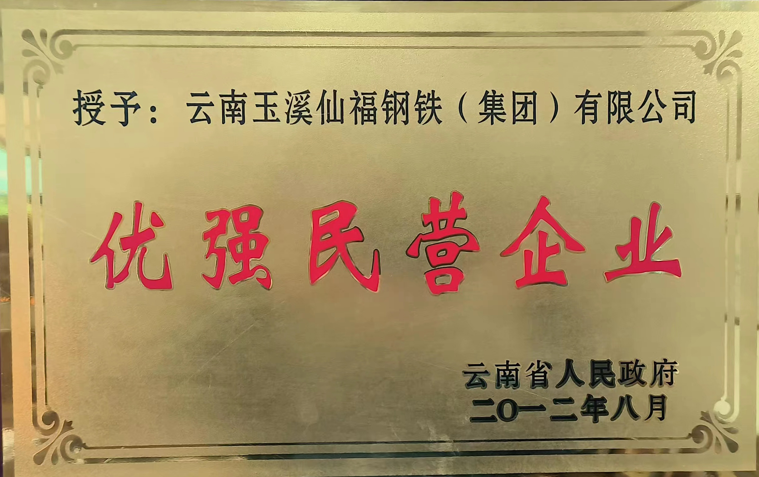 云南省人民政府授予"優(yōu)強(qiáng)民營企業(yè)“榮譽(yù)稱號