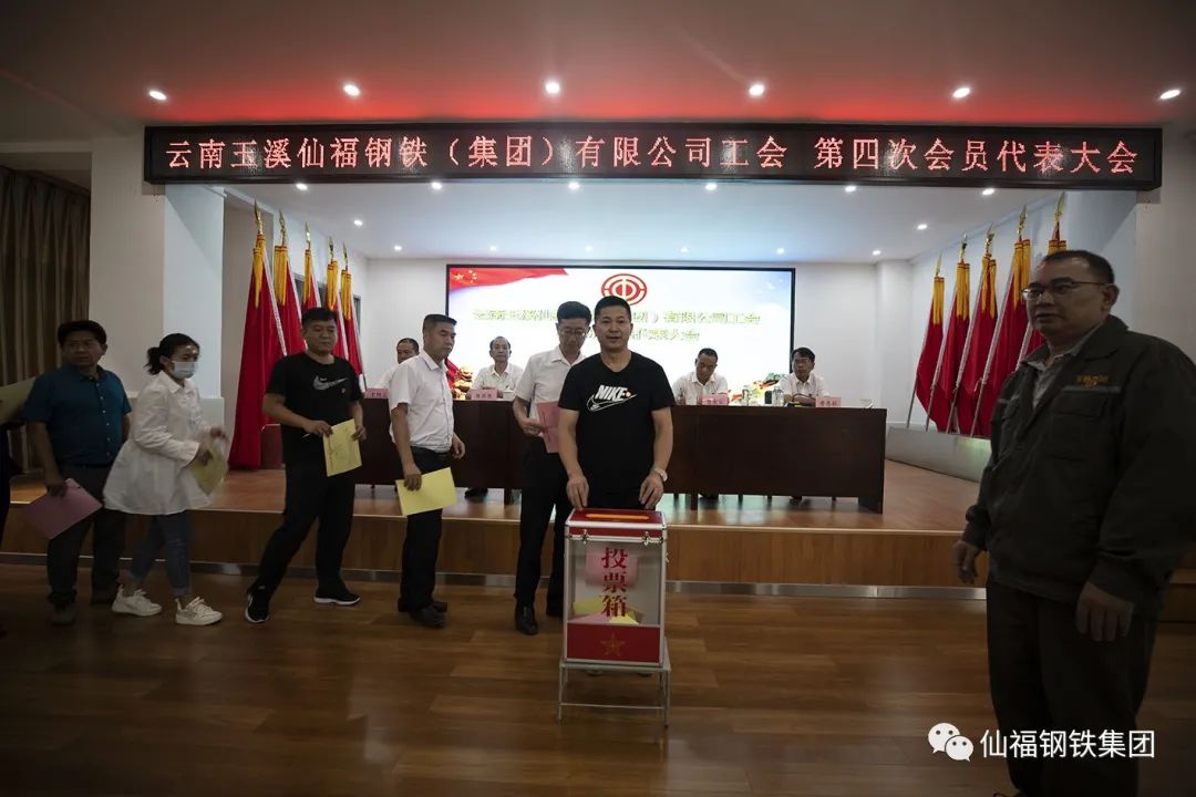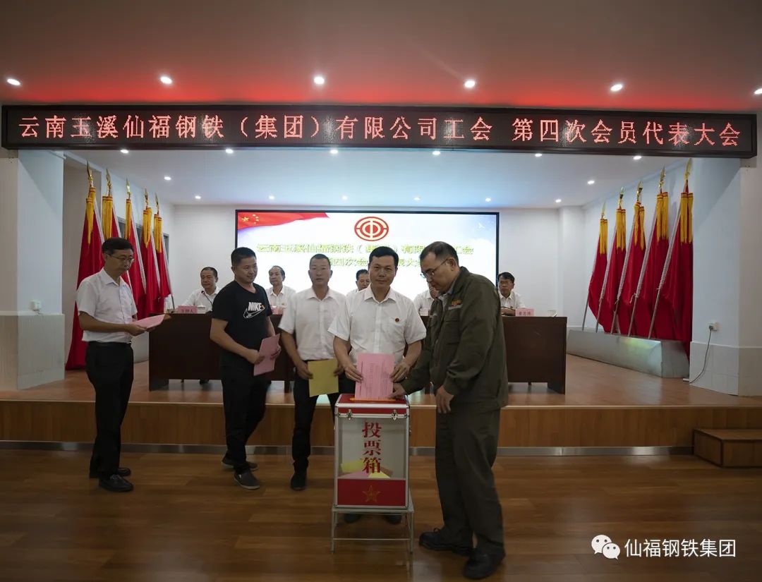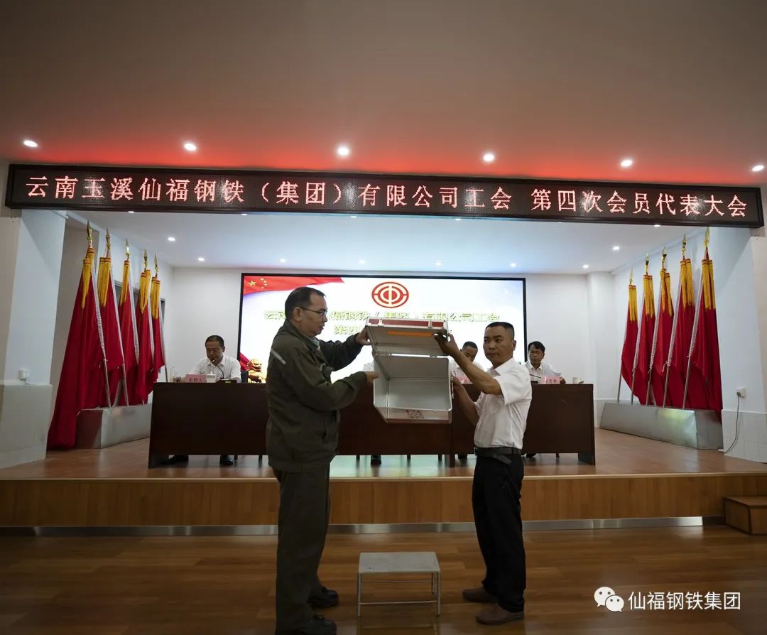 會議在莊嚴的國歌中隆重開幕。上屆工會陳彩惠主席作了《云南玉溪仙福鋼鐵(集團)有限公司工會第三屆委員會的工作報告》,會議審議通過了《大會選舉辦法》(草案)、《委員替補、增補辦法》(草案)以及總監票人和監票人名單。充分發揚民主,以無記名投票方式選舉產生了集團工會第四屆委員會委員17名、經費審查委員會委員3名。召開了第四屆委員會委員會議,選舉產生了工會主席、副主席,提名產生女職工委員會委員及女工委主任;同時召開第四屆經費審查委員會委員會議,選舉主任。